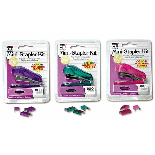 Mini Stapler kit includes a transparent mini stapler in assorted colors and 2,000 color-matched standard staples. Each mini stapler has a built-in staple remover.