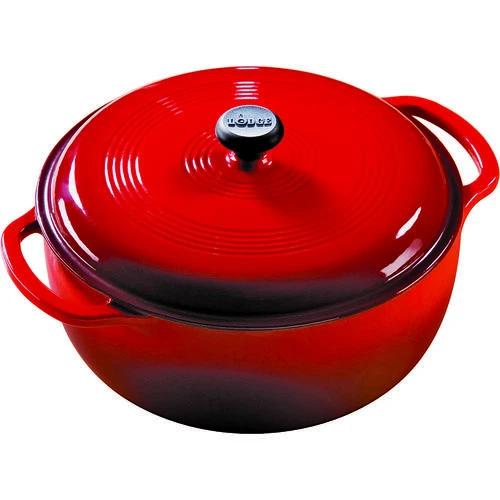 LODGE EC6D43 Dutch Oven, 6 Qt Capacity, Iron, Red, Loop Handle